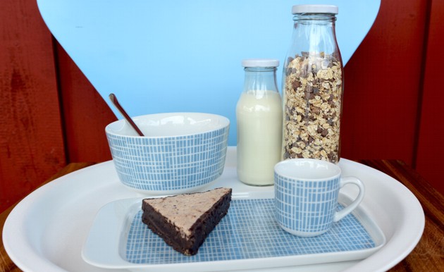 Für die kleine Pause zwischendurch - Espressotasse und einer süßen Leckerei drauf - läßt sich beides mit einer Hand tragen.